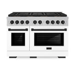 ZLINE Autograph Edition 48" 6.7 cu. ft. Paramount Gas Range with 8 Burner DuoPro™ Cooktop and Dual Ovens in Satin Stainless Steel with White Matte Doors and Matte Black Accents, PSGRSZ-WM-48-MB