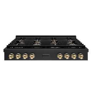 Vendor:ZLINEZLINE Paramount 36" Gas Rangetop with 6 Brass Burners and Porcelain Cooktop in Black Stainless Steel, SRTB-BR-36