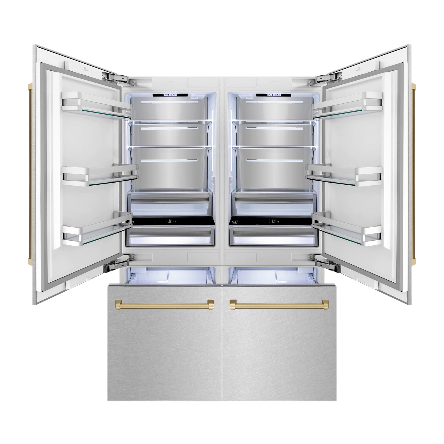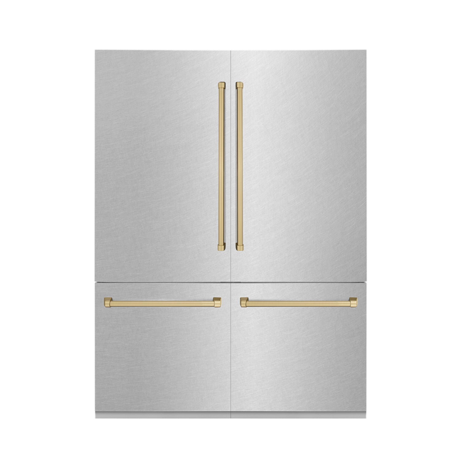 ZLINE Autograph 60" 32.2 cu. ft. French Door Built-In Bottom Freezer Refrigerator with Water Dispenser and Ice Maker in Satin Stainless Steel with Champagne Bronze Accents, RBIVZ-SN-60-CB