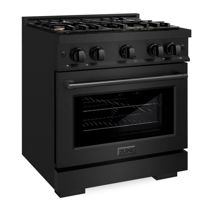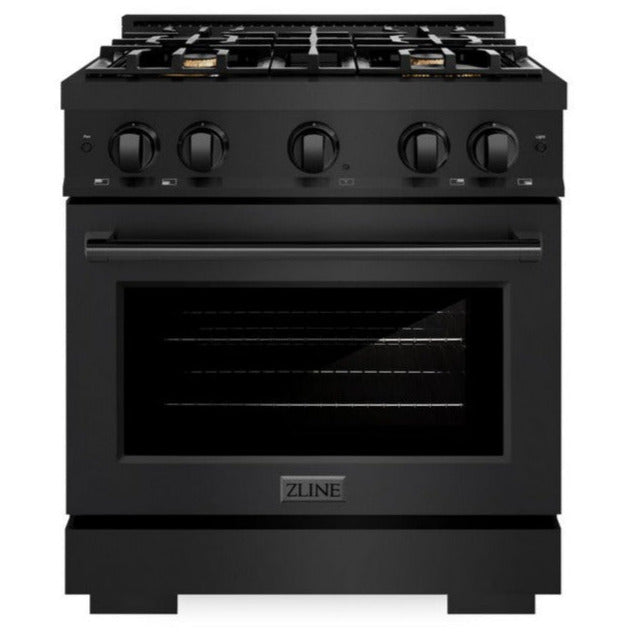 ZLINE 30" 4.2 cu. ft. Select Dual Fuel Range withs in Black Stainless Steel with 4 Brass Burners, HDRB-BR-30