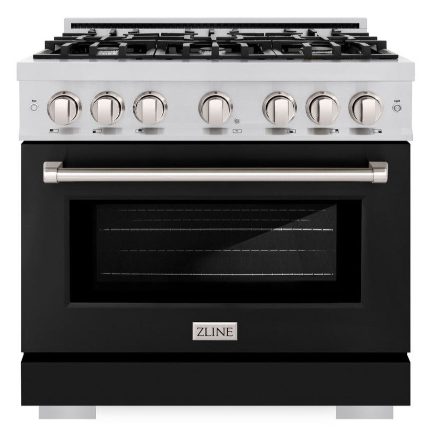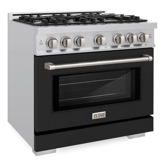 ZLINE 36" 5.2 cu. ft. Select Dual Fuel Range with 6 Burners in Stainless Steel with Black Matte Door, HDR-BLM-36