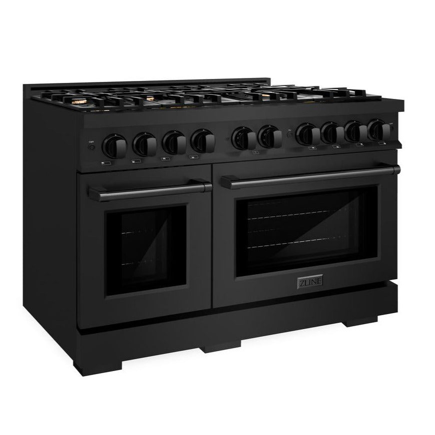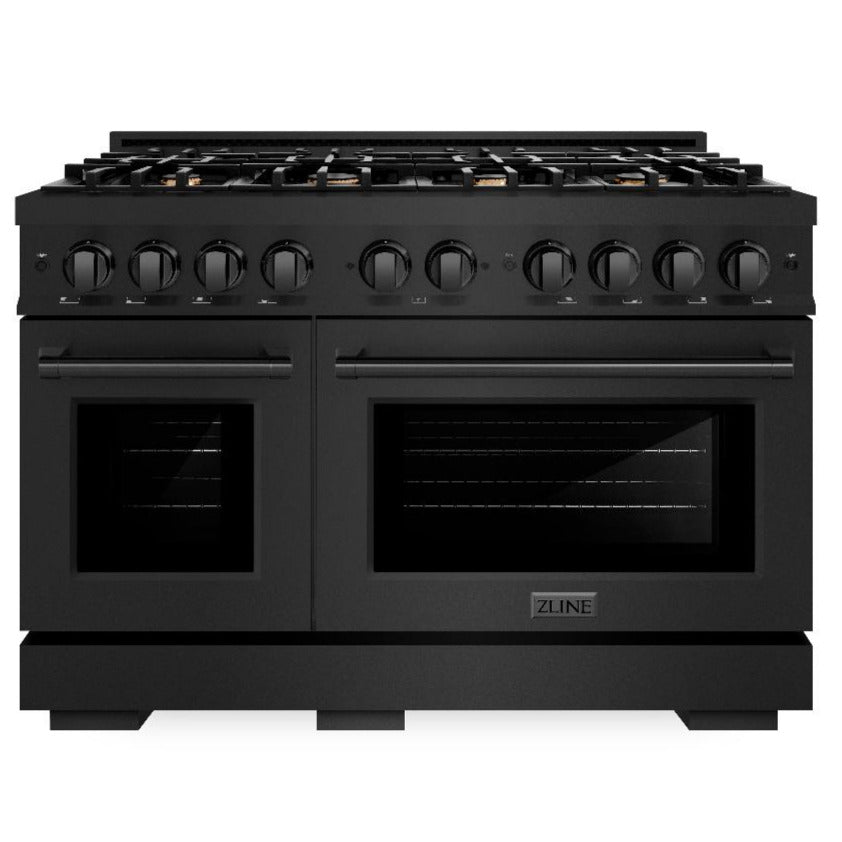 ZLINE 48" 6.7 cu. ft. Select Double Oven Gas Range in Black Stainless Steel with 8 Brass Burners, HGRB-BR-48