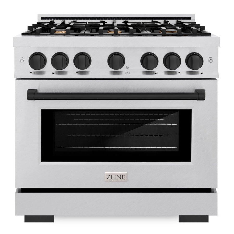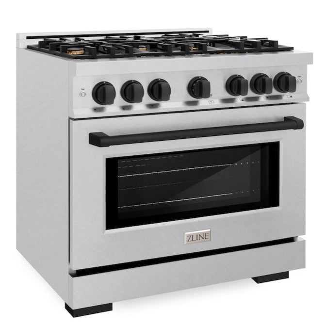 ZLINE Autograph 36" 5.2 cu. ft. Select Gas Range with 6 Burner Cooktop and Convection Gas Oven in Satin Stainless Steel and Matte Black Accents, HGRSZ-36-MB