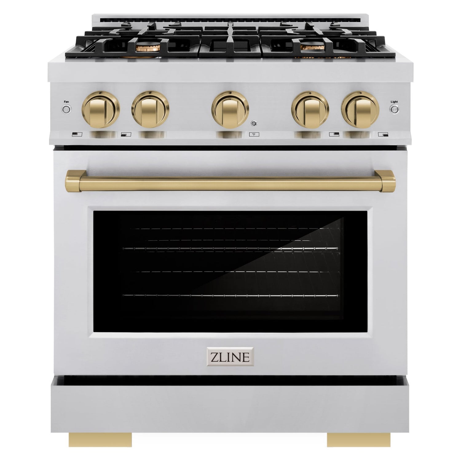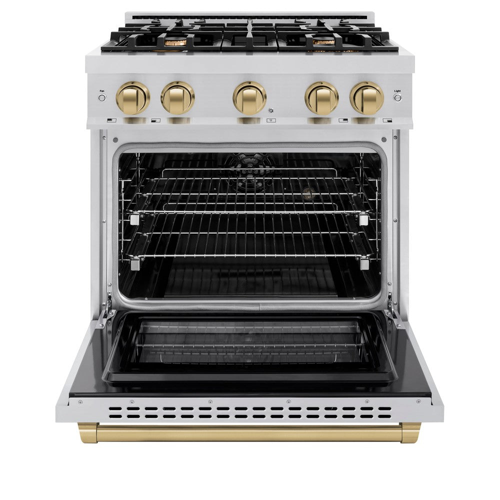 ZLINE Autograph 30" 4.2 cu. ft. Select Dual Fuel Range with 4 Burners in Stainless Steel with Champagne Bronze Accents, HDRZ-30-CB
