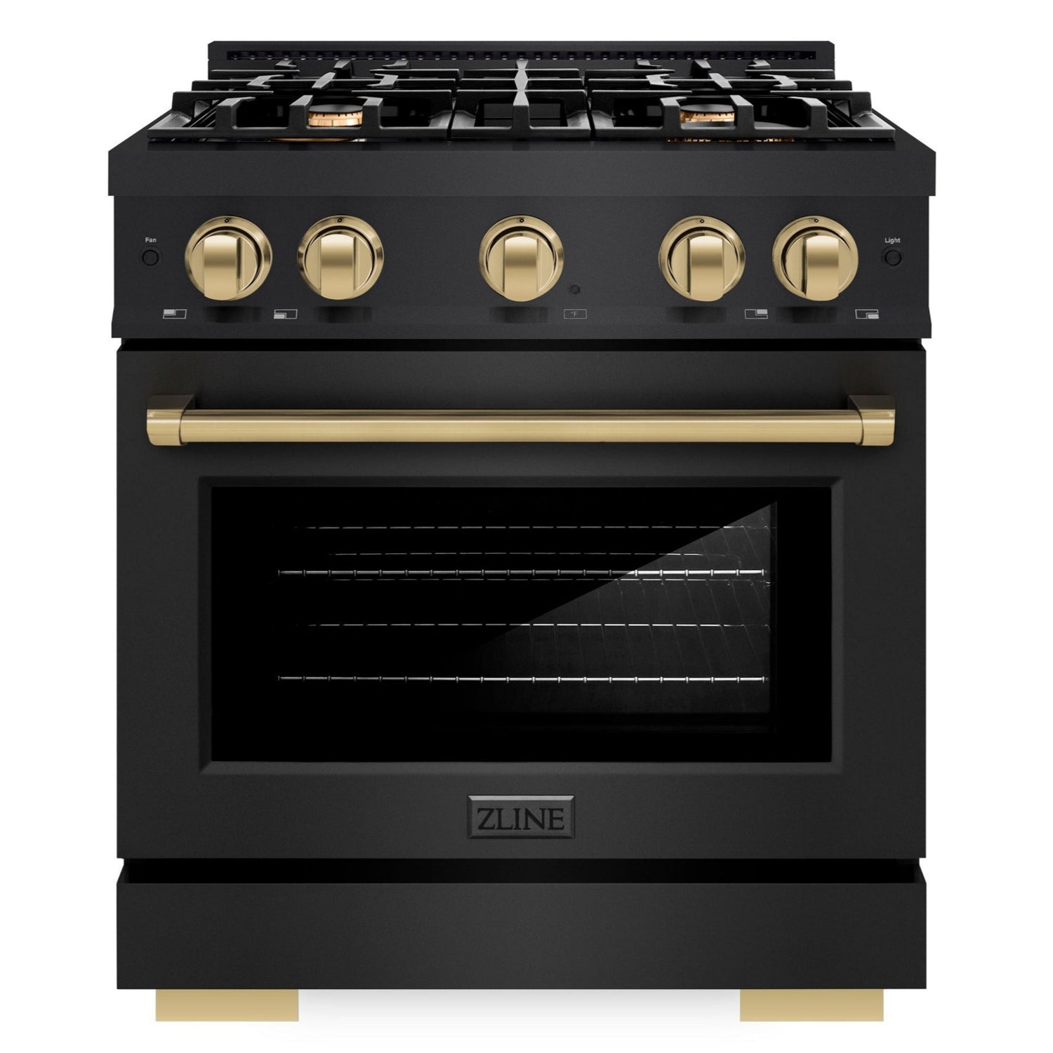 ZLINE Autograph 30" 4.2 cu. ft. Select Gas Range with 4 Burners in Black Stainless Steel and Champagne Bronze Accents, HGRBZ-30-CB