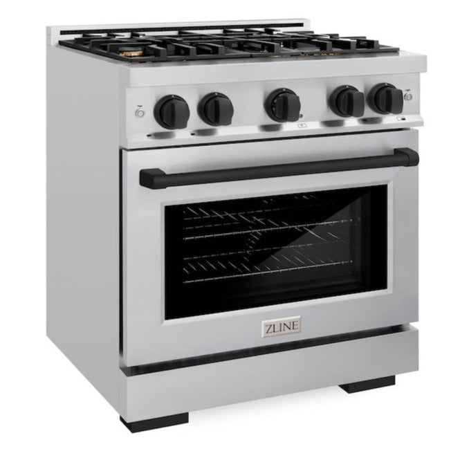 ZLINE Autograph 30" 4.2 cu. ft. Select Gas Range with 4 Burners in Stainless Steel and Matte Black Accents, HGRZ-30-MB