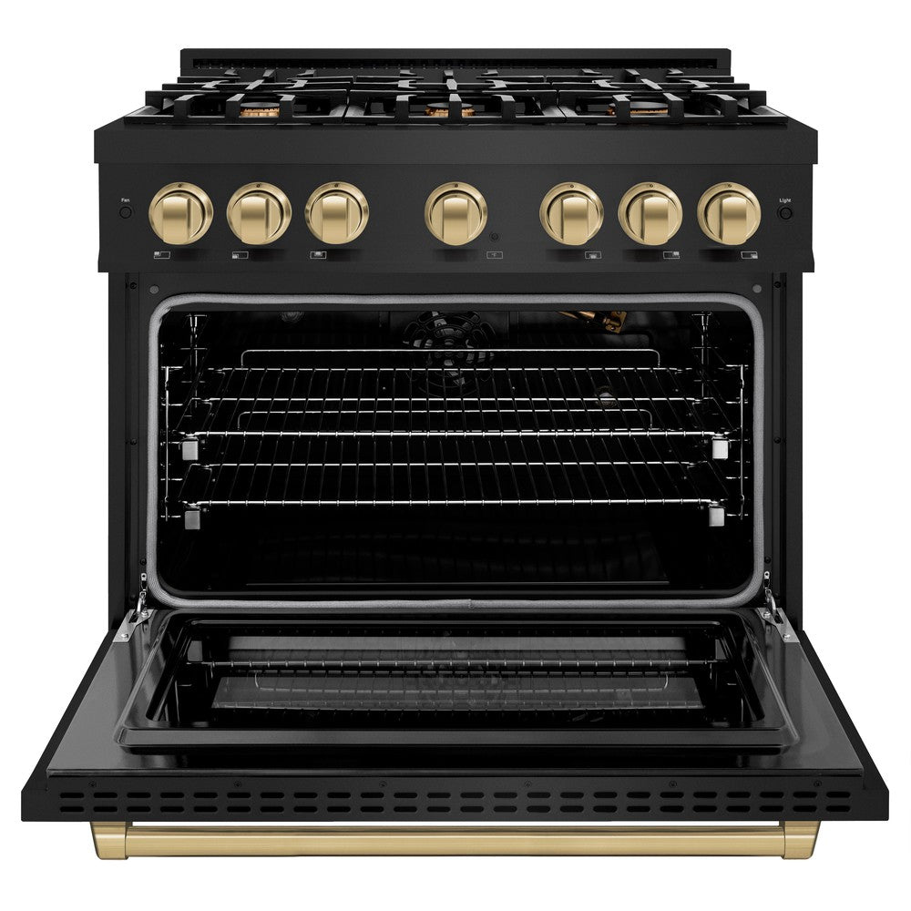 ZLINE Autograph 36" 5.2 cu. ft. Select Gas Range with 6 Burners in Black Stainless Steel and Champagne Bronze Accents, HGRBZ-36-CB