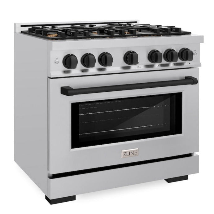 ZLINE Autograph 36" 5.2 cu. ft. Select Gas Range with 6 Burners in Stainless Steel and Matte Black Accents, HGRZ-36-MB