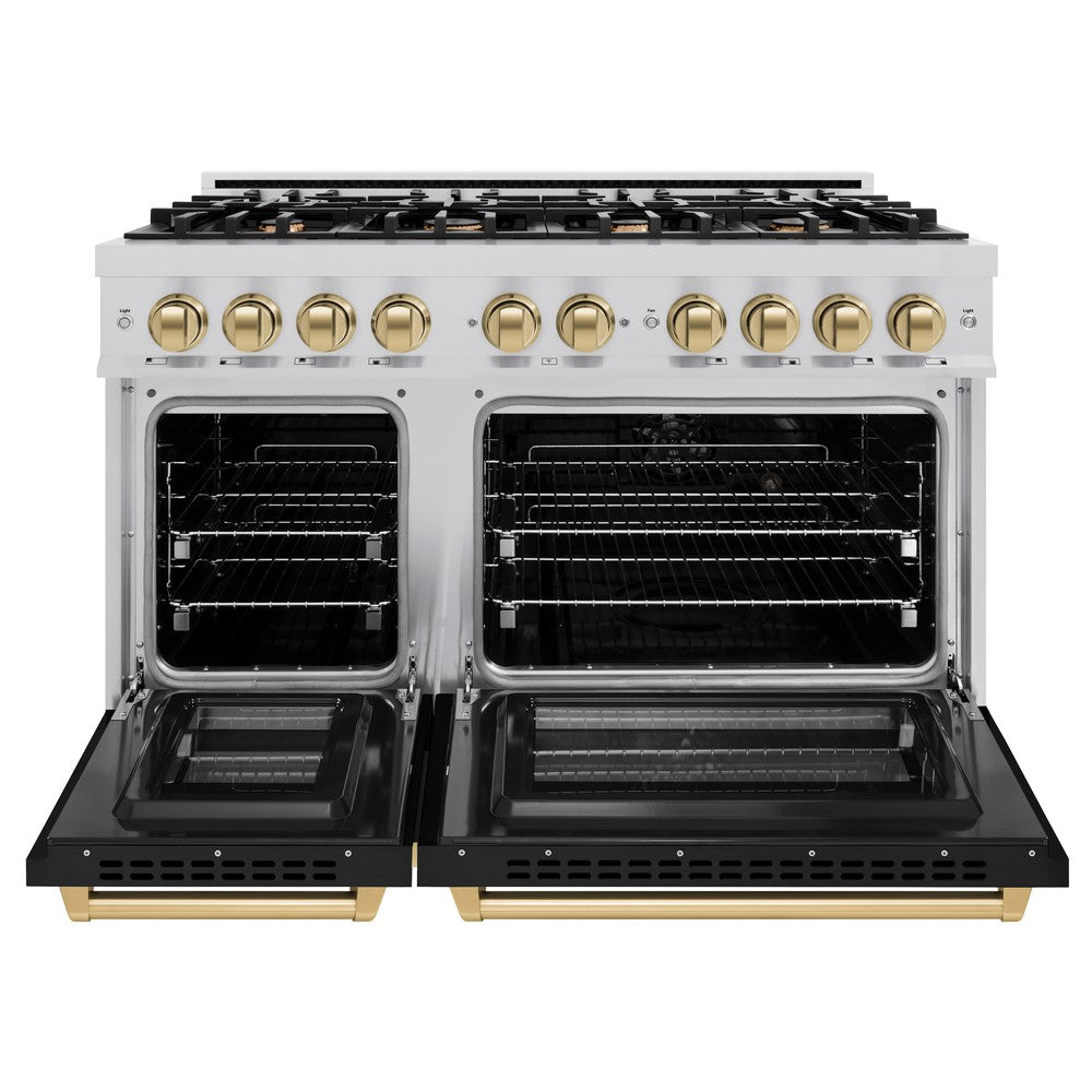 ZLINE Autograph 48" 6.7 cu. ft. Select Double Oven Dual Fuel Range with 8 Burners in Stainless Steel with Black Matte Doors and Champagne Bronze Accents, HDRZ-BLM-48-CB
