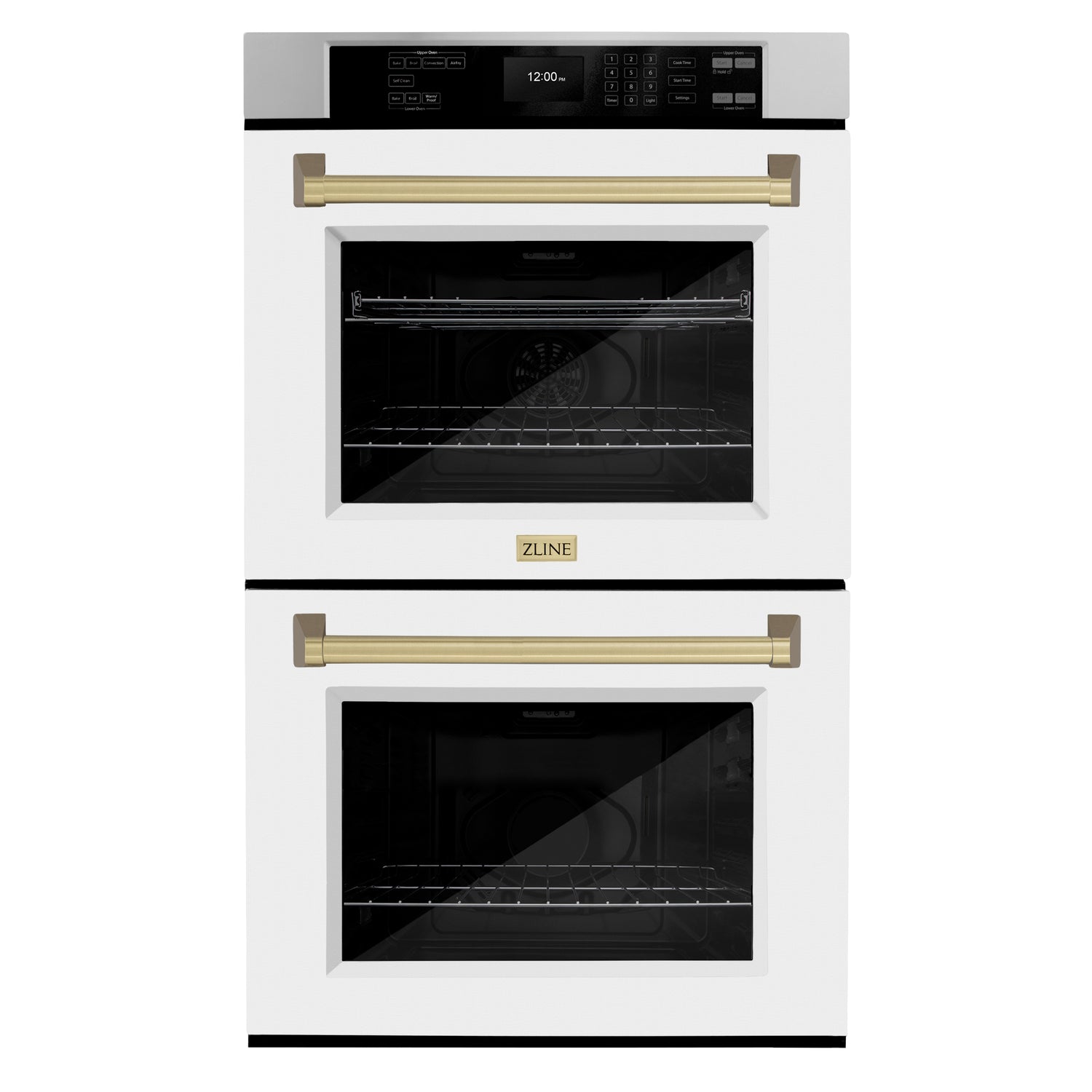 ZLINE 30" Autograph Double Wall Oven with Air Fry and Self-Clean in Stainless Steel with White Matte Door and Champagne Bronze Handle, WADZ-WM-30-CB