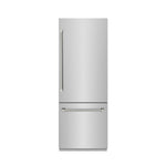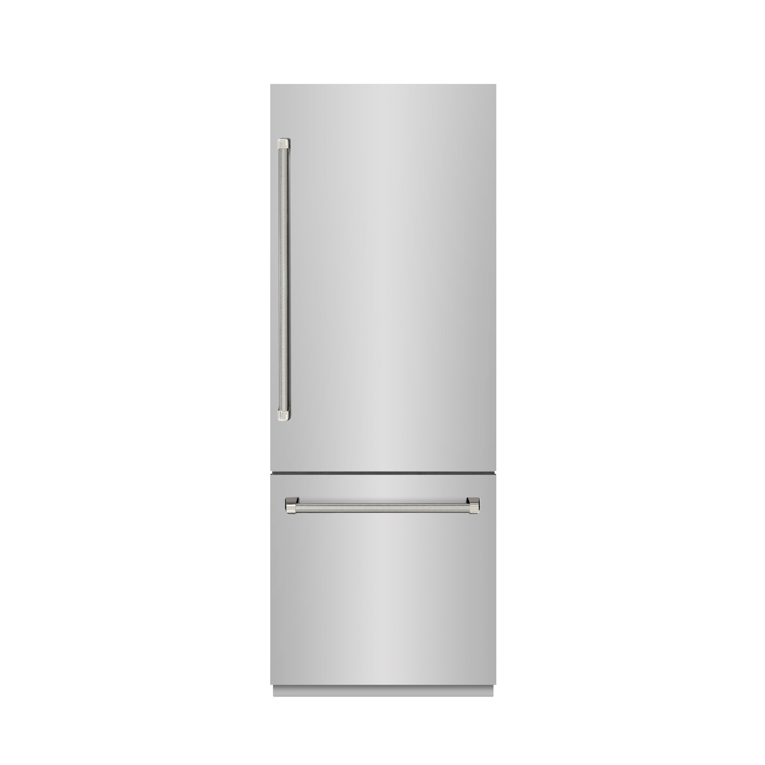 ZLINE Autograph 30" 16.1 cu. ft. Built-In Bottom Freezer Refrigerator with Water Dispenser and Ice Maker in Stainless Steel with Graphite Gray Interior and Polished Nickel Helix Handles, GRBIVZ-30430KPN