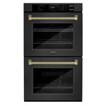 ZLINE Autograph 30" Professional True Convection Double Wall Oven with Air Fry and Self Clean in Black Stainless Steel with Champagne Bronze Helix Handles, WADBZ-30-KCB