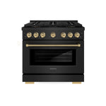 ZLINE Autograph 36" 5.2 cu. ft. Paramount Gas Range with 6 Burner DuoPro™ Cooktop and Convection Gas Oven in Black Stainless Steel with Champagne Bronze Helix Handle and Accents, PSGRBZ-36-KCB