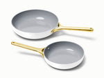 Caraway Fry Pan Duo in White with Gold Handles