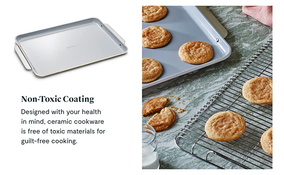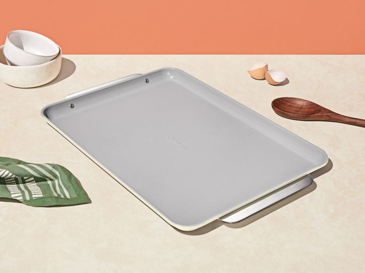 Meet the healthiest baking sheet for your luxury kitchen. The 18x13" Large Baking Sheet is the easy-to-handle answer for big batches of everything. Use for baking, roasting, and more. Featuring a non-toxic, naturally slick ceramic coating, healthy baking has never been easier.