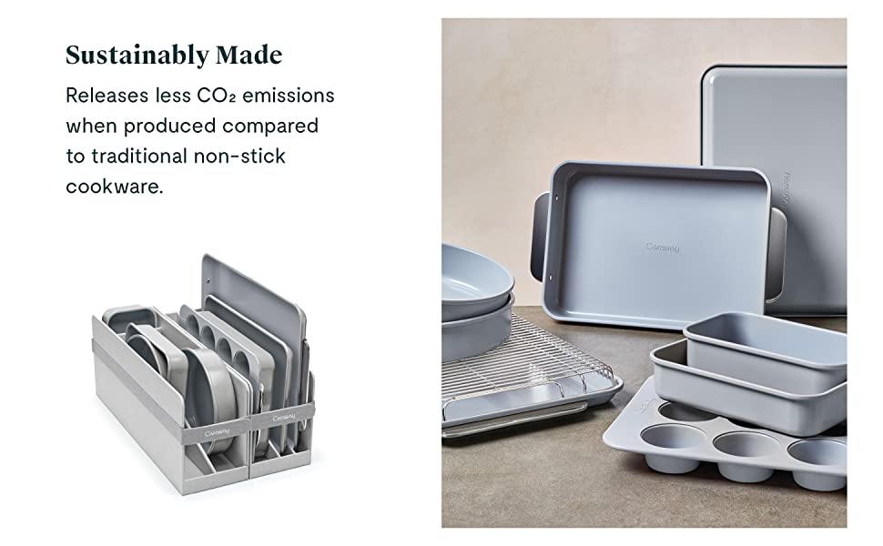 Eco-Friendly. Planet-Approved Bakeware that releases up to 60% less CO2 when produced compared to traditional non-stick coatings.