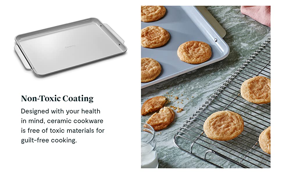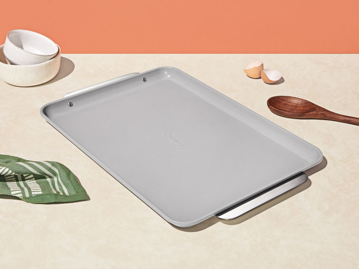 Meet the healthiest baking sheet for your luxury kitchen. The 18x13" Large Baking Sheet is the easy-to-handle answer for big batches of everything. Use for baking, roasting, and more. Featuring a non-toxic, naturally slick ceramic coating, healthy baking has never been easier.
