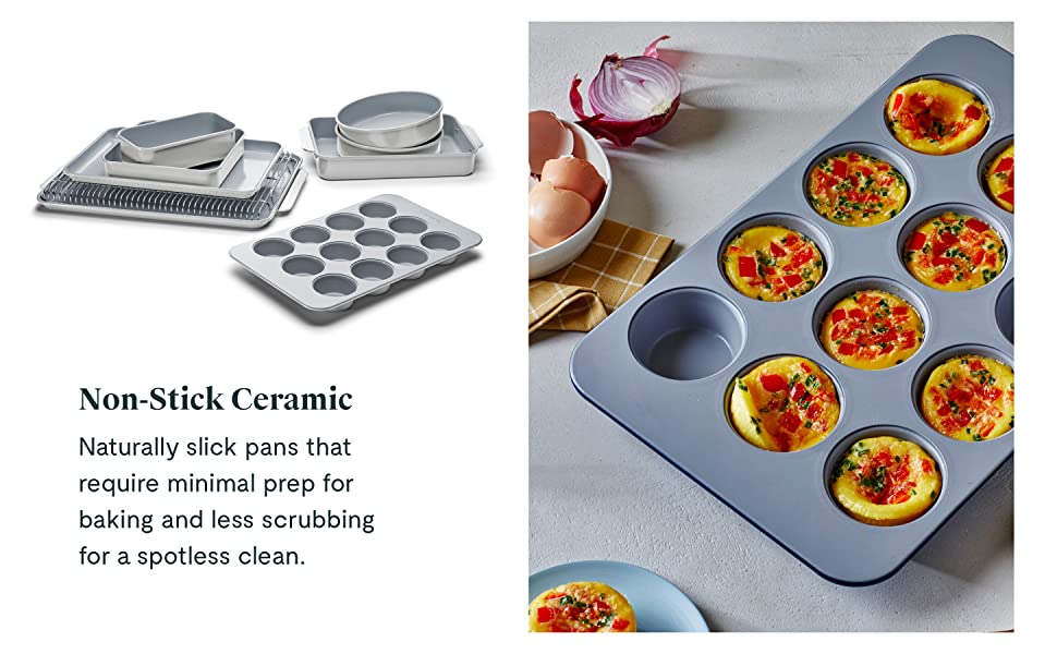 Non-Stick. Naturally slick pans that require minimal prep for baking and less scrubbing for a spotless clean refresh.