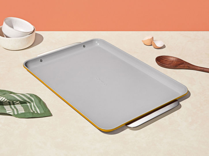 Meet the healthiest baking sheet for your luxury kitchen. The 18x13" Large Baking Sheet is the easy-to-handle answer for big batches of everything. Use for baking, roasting, and more. Featuring a non-toxic, naturally slick ceramic coating, healthy baking has never been easier.