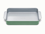 Meet the healthiest Rectangle Pan by Caraway. The 9x13" Rectangle Pan in Sage enables you to bake goods without any of the bads: use for all your favorites like brownies, lasagnas, and more. Featuring a non-toxic, naturally slick ceramic coating, this durable pan makes healthy baking (and clean up) easier than ever.