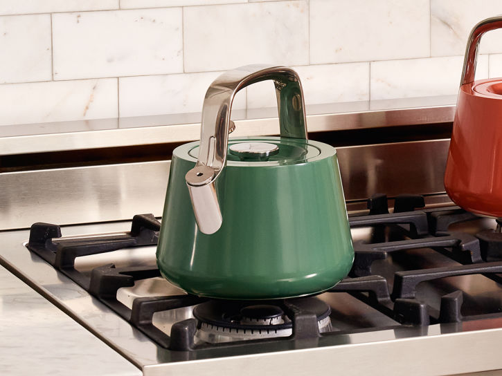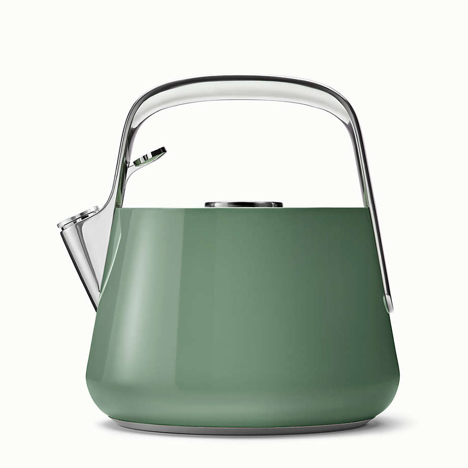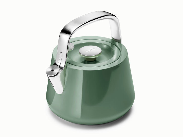 Meet your next Whistling Tea Kettle. Caraway’s Whistling Tea Kettle is a modern take on the classic kitchen essential, constructed with non-toxic materials to keep your boiled water clean and free of harmful chemicals. As easy on the eyes as it is on the ears, our durable stainless steel Tea Kettle is one worth whistling at. The beautiful and unique design will have your friends and family jealous of the sage-colored exterior and stainless steel handles...and yes...it's designed for fast boiling :)