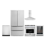 Cosmo Package - 36" Gas Range, Wall Mount Range Hood, Dishwasher, Refrigerator with Ice Maker and Wine Cooler, COS-5PKG-086