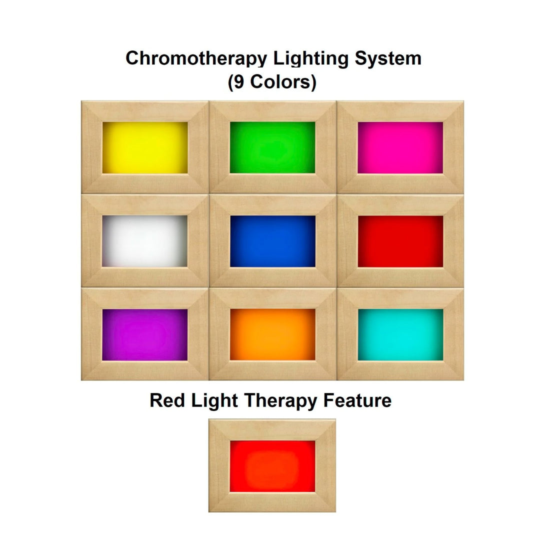 • Chromotherapy Lighting: Interior color lighting system enhances mood, balance, and relaxation through light-based therapy.