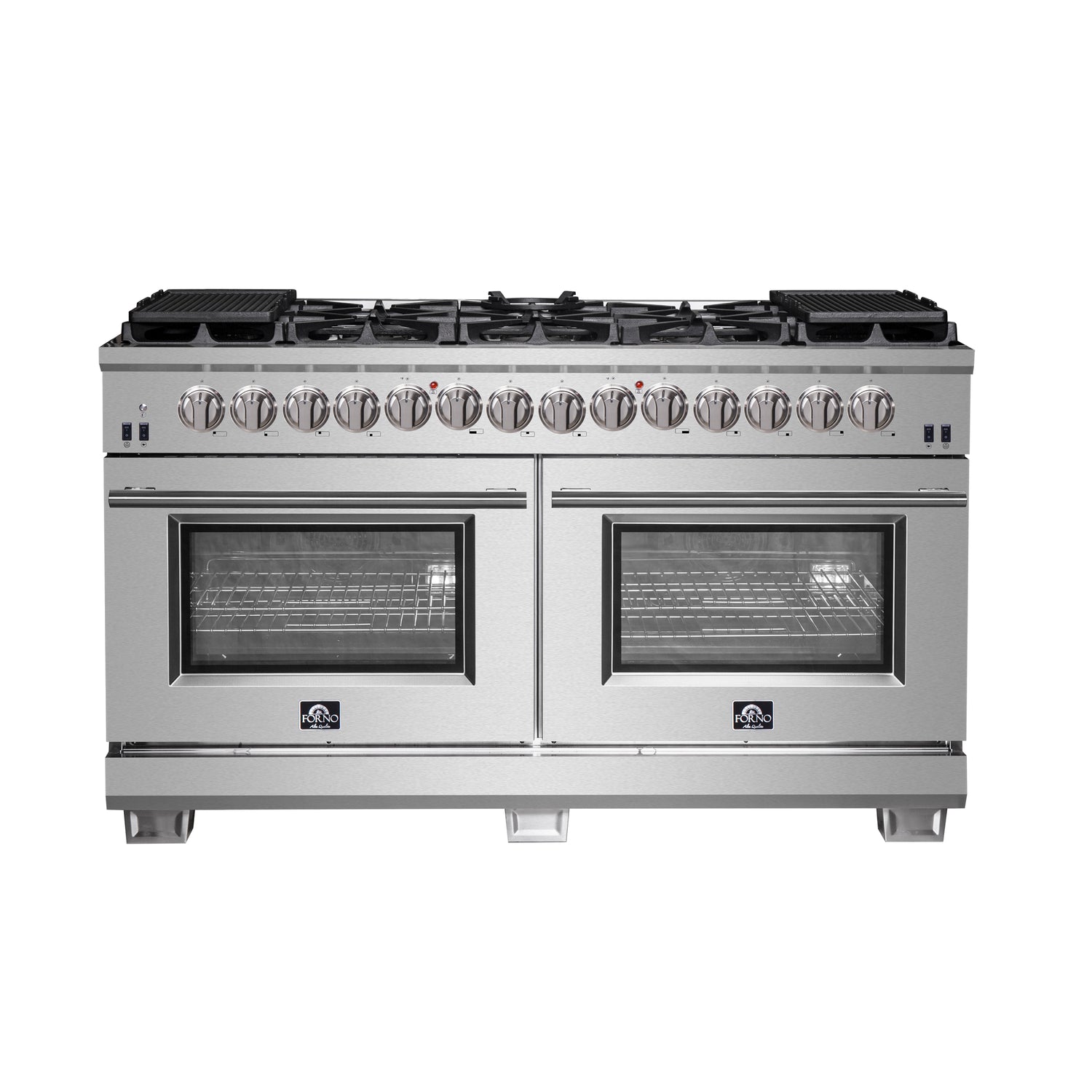 FORNO Capriasca 60" 8.64 cu. ft. Dual Fuel Range with 10 Italian Burners in Stainless Steel, FFSGS6187-60