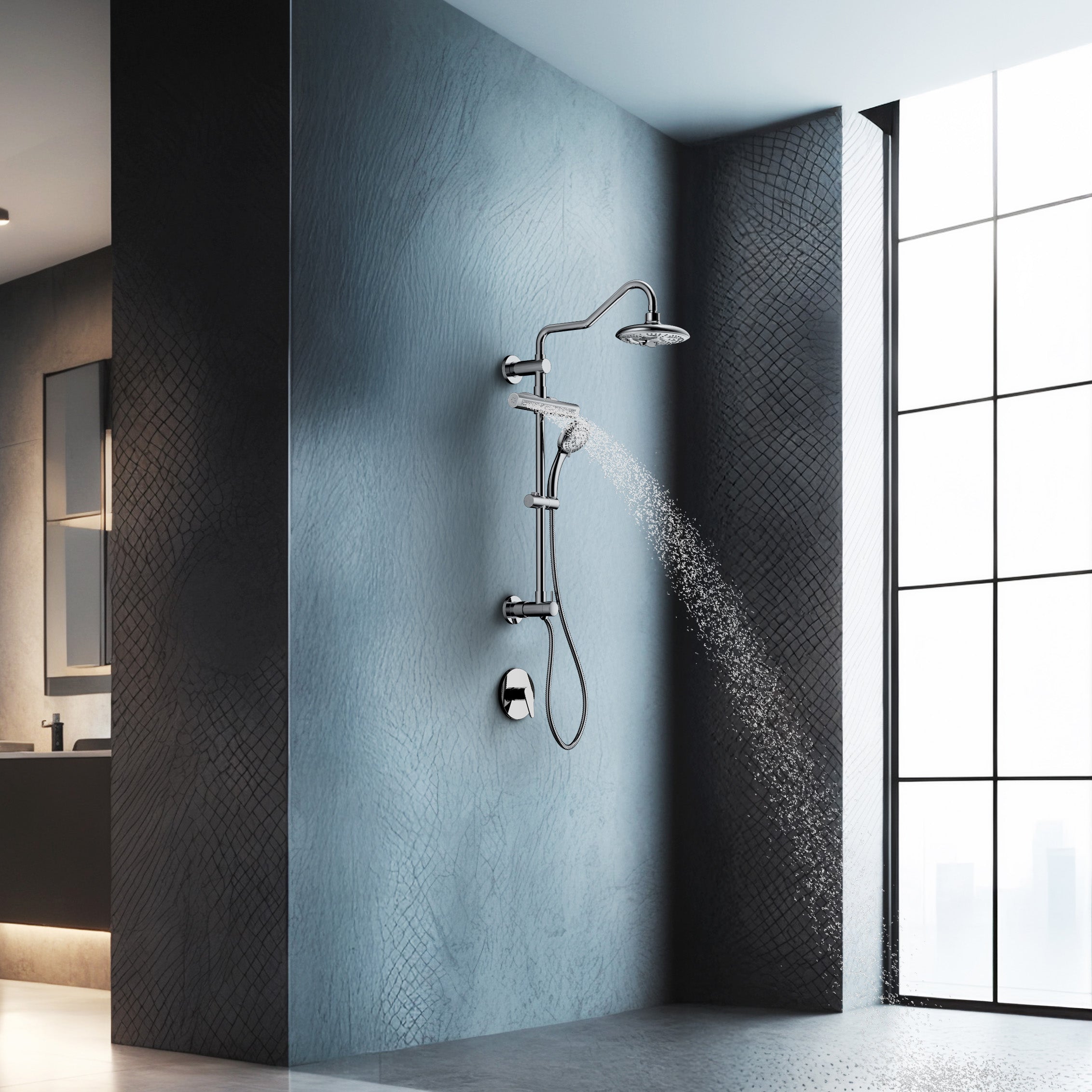 7-Way Diverter: Full control to switch between rain shower, handheld, and AcquaFALL—or combine them.
