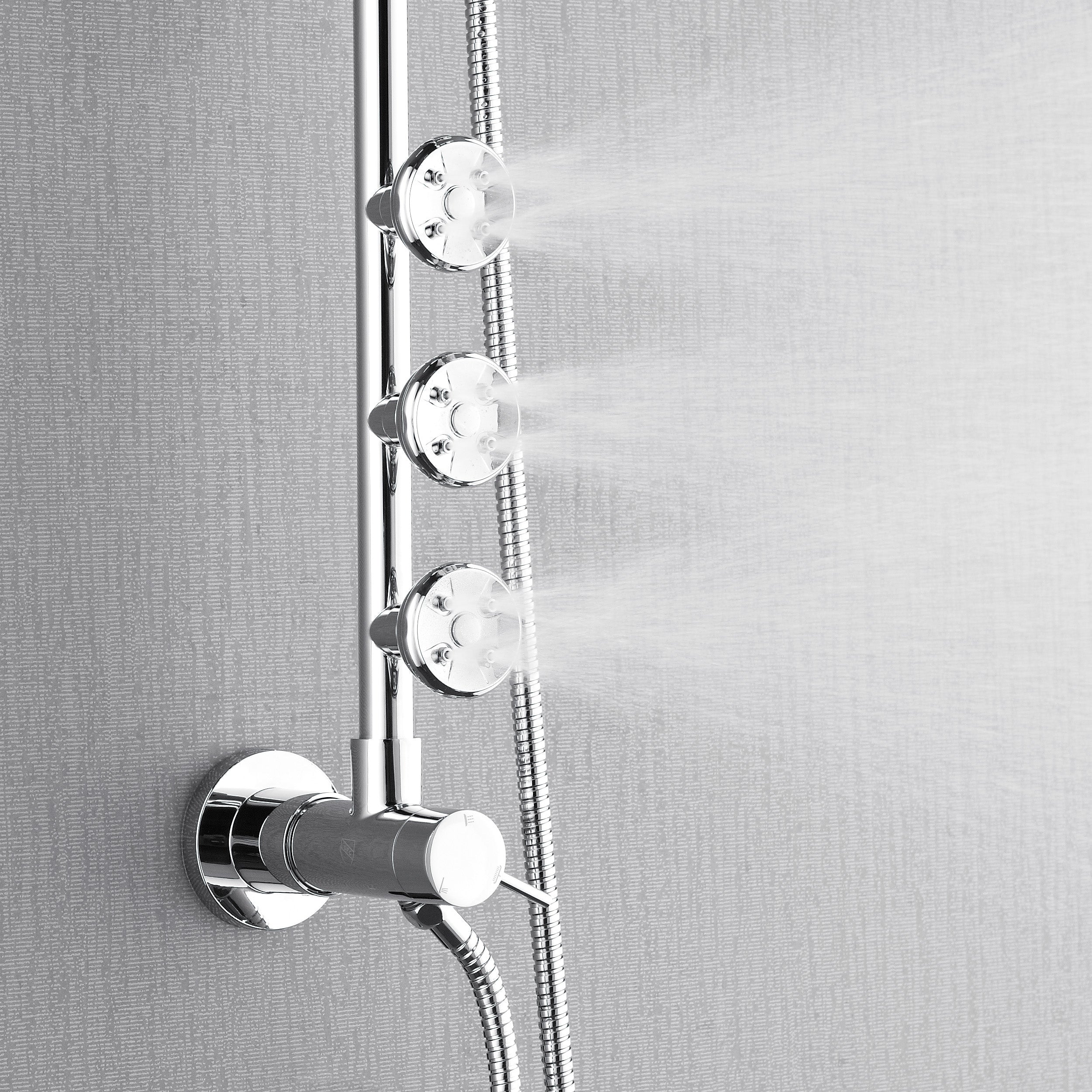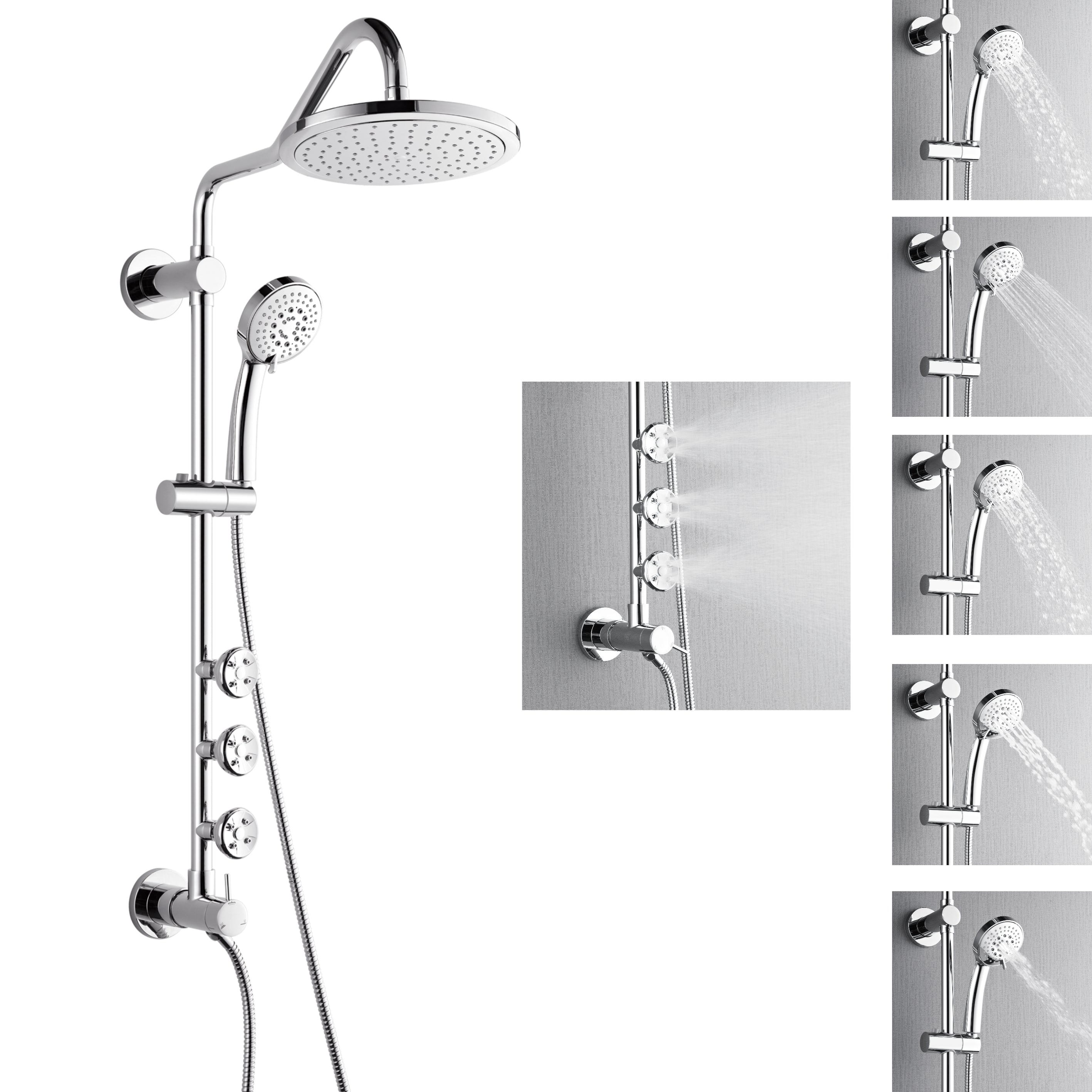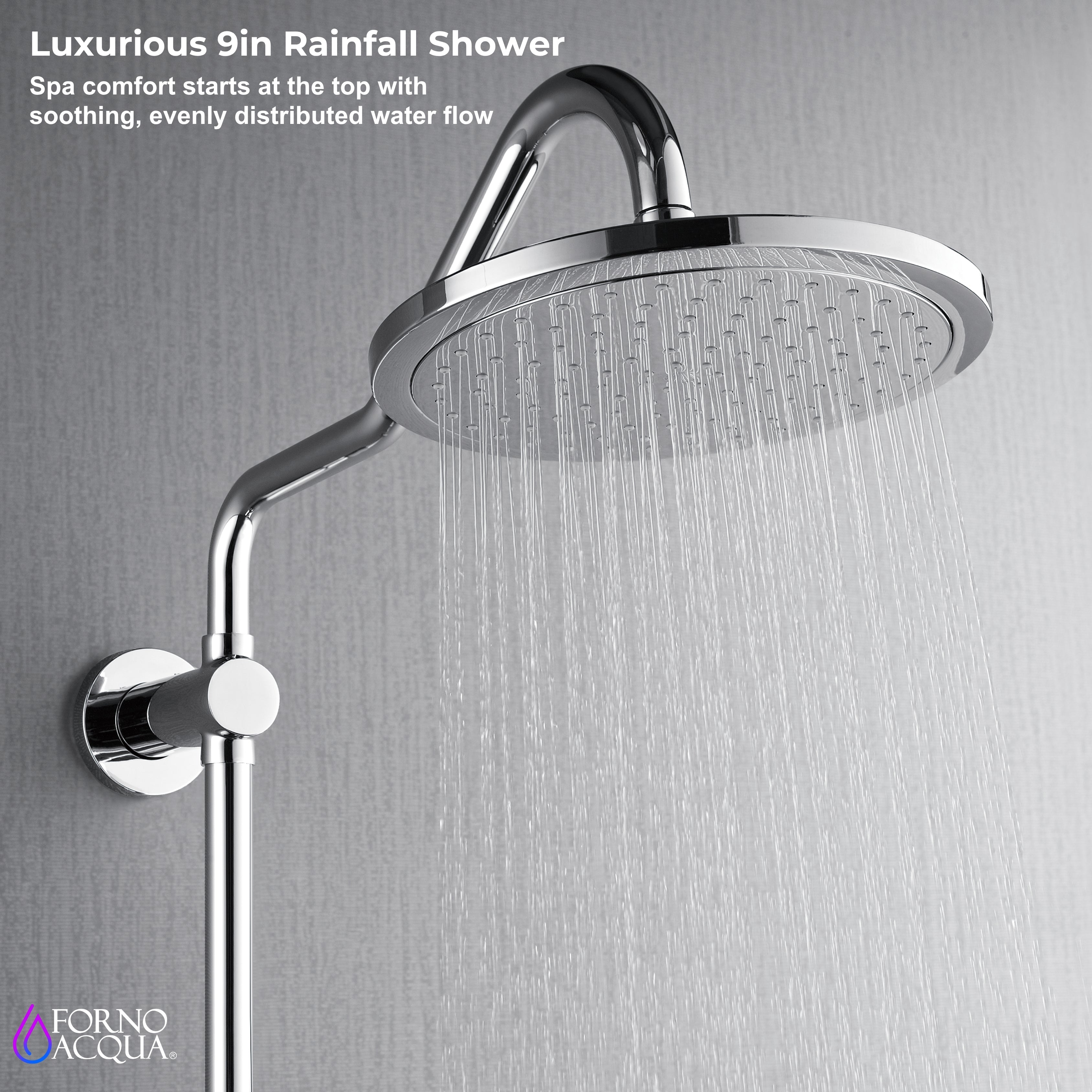 Refresh your bathroom with the FORNO ACQUA AcquaSPA Shower Column, a spa-style upgrade designed for comfort and convenience. Featuring a soothing 9" oversized rain shower head for immersive full-body coverage, three adjustable body jets for targeted relief, and a 5-function ergonomic handheld for flexible use, this system blends luxury with everyday practicality. Finished in polished chrome, it operates at a water-efficient 1.8 GPM or 2.5 GPM flow rate for consistent pressure while meeting EPA standards. A smooth 6-way diverter gives you full control over all outlets, and the DIY-friendly design installs quickly on flat or uneven walls using existing plumbing—no remodeling required. Perfect for modern and transitional bathrooms alike.