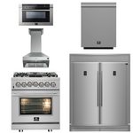 FORNO Appliance Package - 30" Dual Fuel Range, 30" Range Hood, 60" Refrigerator, Dishwasher, Microwave Drawer, AP-FFSGS6125-30-W-8