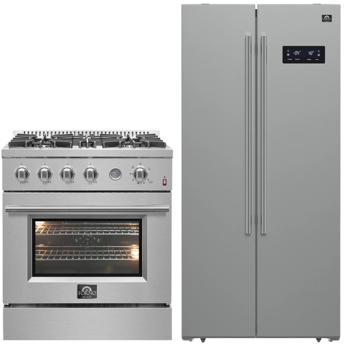 FORNO Appliance Package - 30" Gas Range with Built-In Temperature Gauge and 33" Refrigerator, FBDL-021-01CAUS