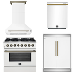 FORNO Appliance Package - 36" Dual Fuel Range, Range Hood, 60" Refrigerator, Dishwasher in White with Antique Brass Accents