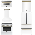 FORNO Appliance Package - 36" Electric Range, Range Hood, 36" Refrigerator, Dishwasher, Microwave in White with Antique Brass Accents