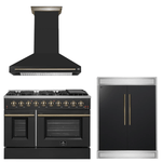 FORNO Appliance Package - 48" Gas Range, Range Hood, 60" Refrigerator in Black with Antique Brass Accents