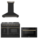 FORNO Appliance Package - 48" Gas Range, Range Hood, Microwave in Black with Antique Brass Accents