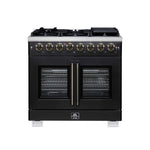 FORNO Capriasca 36" 5.36 cu. ft. Dual Fuel Range with 6 Brass Burners, Air Fryer Kit, Rotisserie Kit, Wok Support & Griddle in Black with Antique Brass Accents, FFSGS6387-36BLK