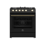 FORNO Espresso Leonardo 30" 5 cu. ft. Gas Range in Black with Antique Brass Handles, FFSGS1116-30BLK