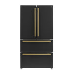FORNO Espresso Moena 36" 19.2 cu. ft. Refrigerator with Ice Maker in Black with Antique Brass Handles, FFRBI1820-36BLK