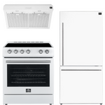 FORNO Espresso Package - 30" Electric Range, Range Hood and Refrigerator in White with Silver Handles, FBDL-001-03US