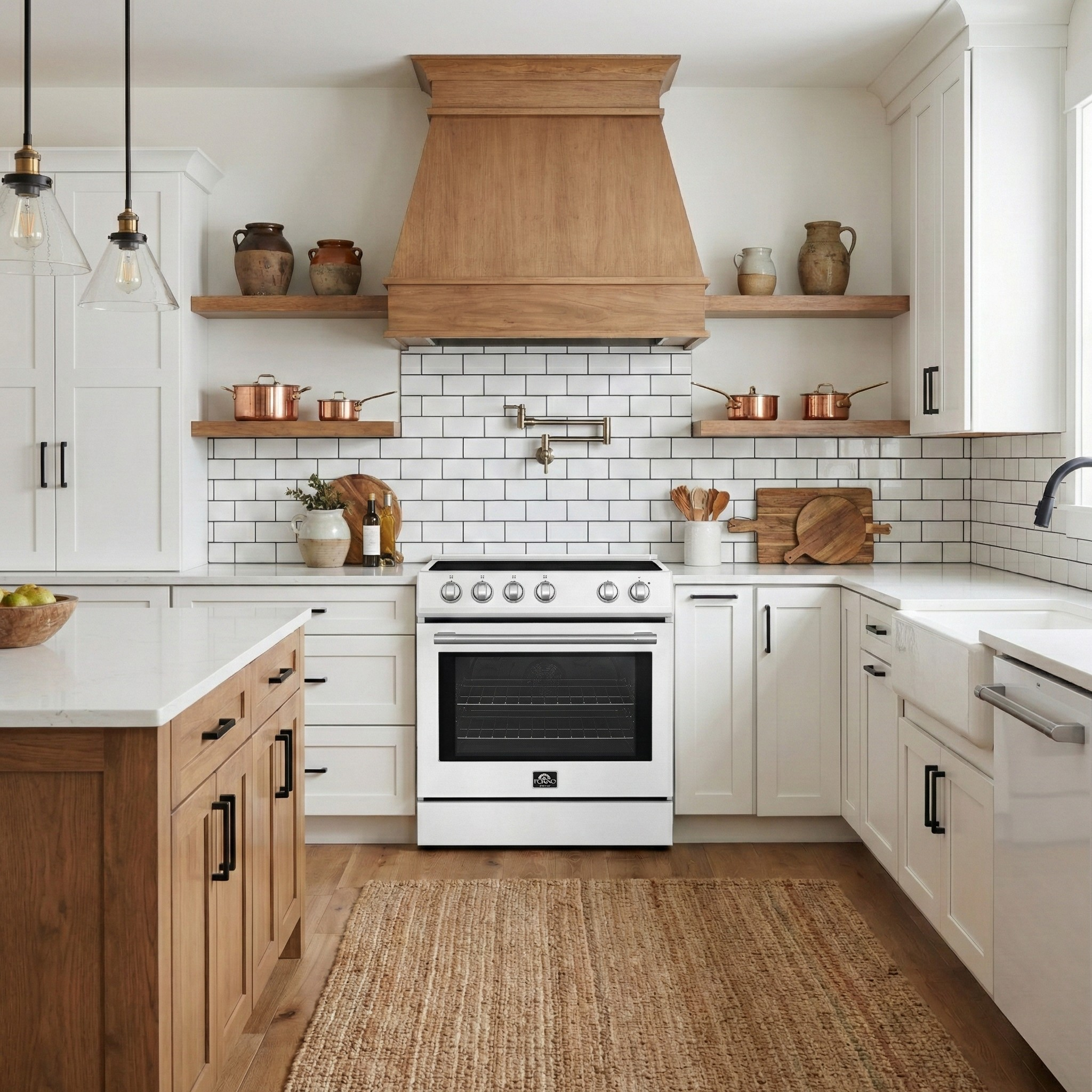 FORNO Espresso Package - 30" Electric Range, Range Hood, Refrigerator and Dishwasher in White with Stainless Steel Handles, FBDL-006-03US
