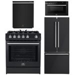 FORNO Espresso Package - 30" Gas Range, 30" Refrigerator with Ice Maker, Dishwasher and 24" Microwave Drawer in Black with Silver Accents