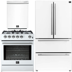 FORNO Espresso Package - 30" Gas Range, 36" Refrigerator with Ice Maker and Dishwasher in White with Silver Accents