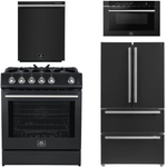 FORNO Espresso Package - 30" Gas Range, 36" Refrigerator with Ice Maker, Dishwasher and 24" Microwave Drawer in Black with Silver Accents