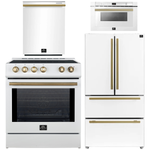 FORNO Espresso Package - 30" Induction Range, 36" Refrigerator with Ice Maker, Dishwasher and 24" Microwave Drawer in Whitewith Antique Brass Accents