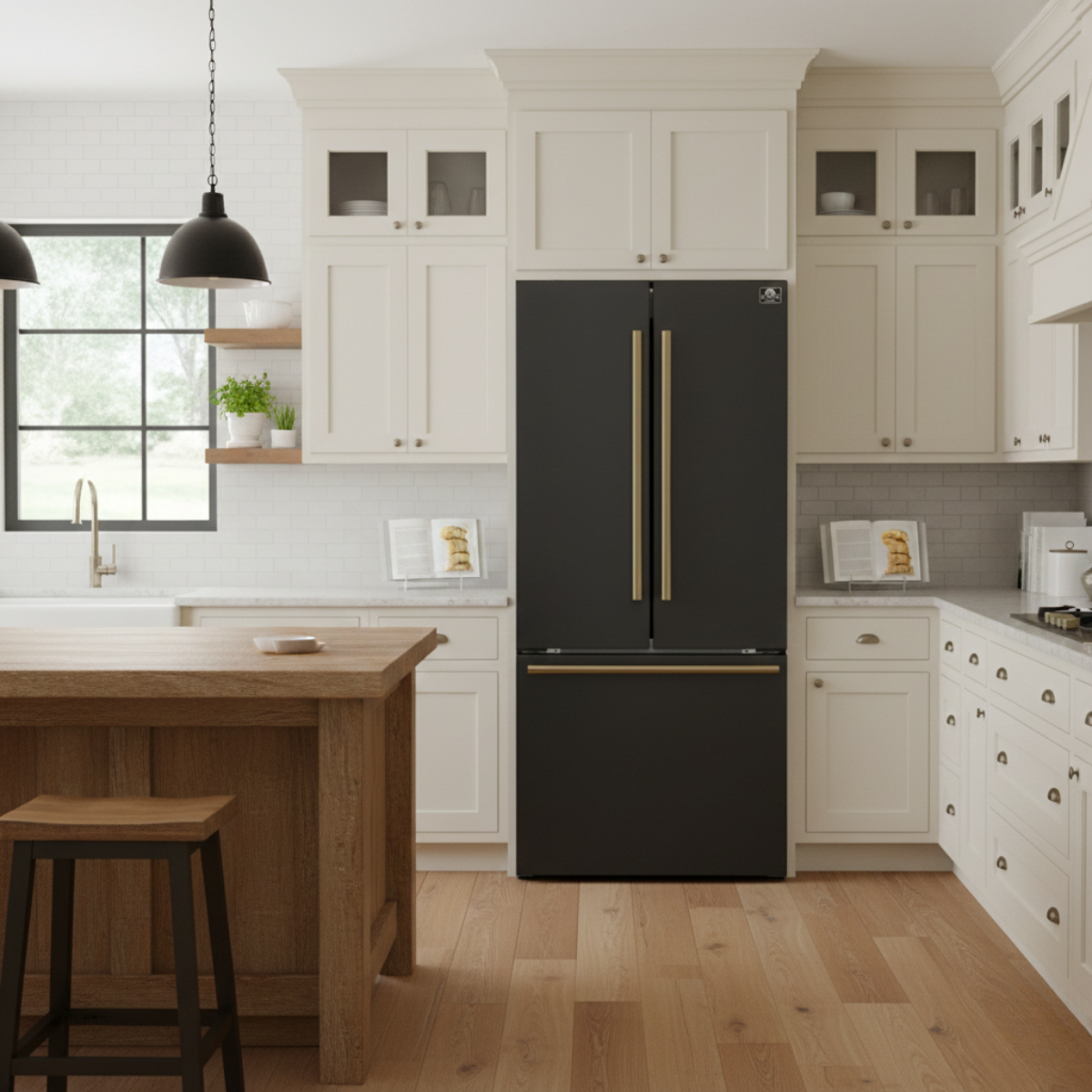 Introducing the Forno Espresso Gallipoli 31-inch French Door Refrigerator, where style meets functionality. Its sleek finish, complemented by antique brass or silver handles, offers a personalized touch, while its innovative features ensure optimal performance.