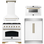 FORNO Espresso Package - 36" Dual Fuel Range, Range Hood, 60" Refrigerator, Microwave in White with Antique Brass Accents