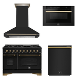 FORNO Espresso Package - 48" Dual Fuel Range, Range Hood, Dishwasher, Microwave in Black with Antique Brass Accents