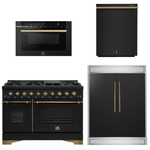 FORNO Espresso Package - 48" Gas Range, 60" Refrigerator, Dishwasher, Microwave in Black with Antique Brass Accents