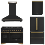 FORNO Espresso Package - 48" Gas Range, Range Hood, 36" Refrigerator, Dishwasher in Black with Antique Brass Accents